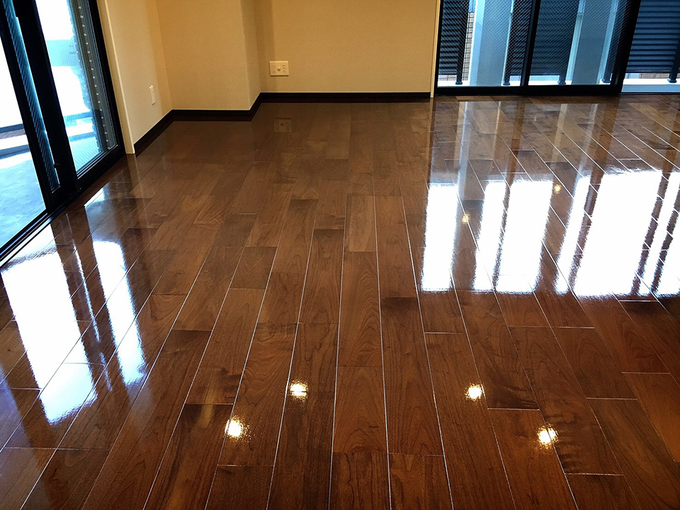新しいフローリングも、日常の生活による磨耗や水分など様々なダメージを受け徐々に傷みます。新築時の床の状態でコーティングすることにより美しいフローリングが長期間維持できます。