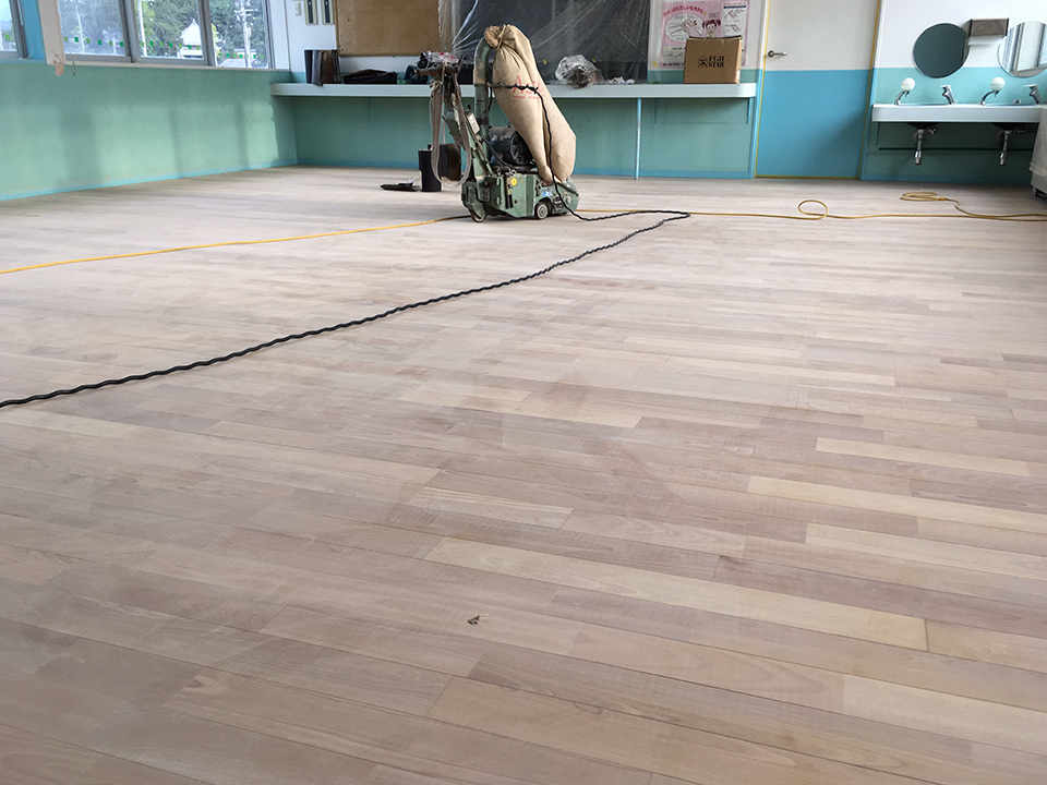 経年劣化により傷んだ無垢フローリングを研磨し、UVフロアコーティングを施工することによって、美しいフローリングを取り戻すことができます。